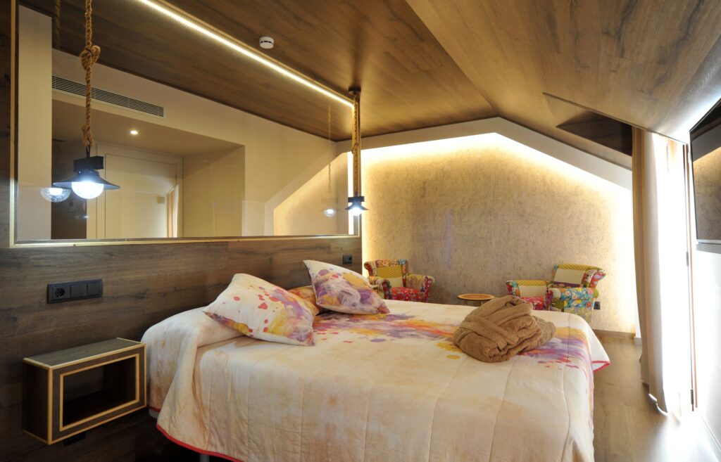 Nuestra habitación Suite Junior, ofrece en un amplio espacio, unas vistas impresionantes nuestro Jardin y la magnifica montaña del Tesol y vistas del pequeño pueblo de montaña. Está diseñada y decorada con un estilo cálido y romántico. Buenos precios, sencillez, bien estar y practicidad.